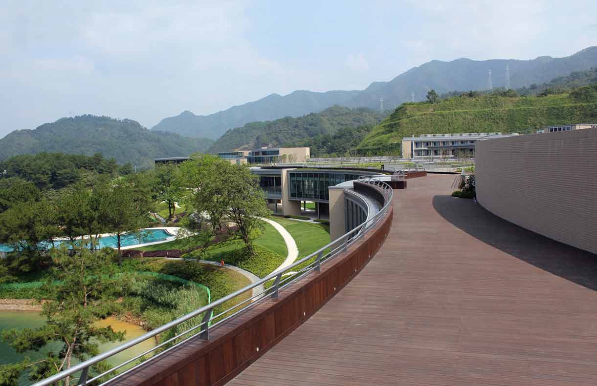 项目运用的高耐户外竹材,属于环保型速生材料。它的应用契合了浙江旅游学院千岛湖校区生态、绿色、环保的设计理念,同时也为这片美丽的校区增添了一抹朴实的绿。