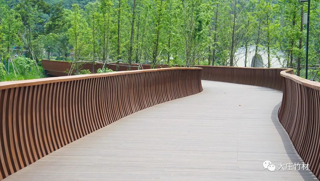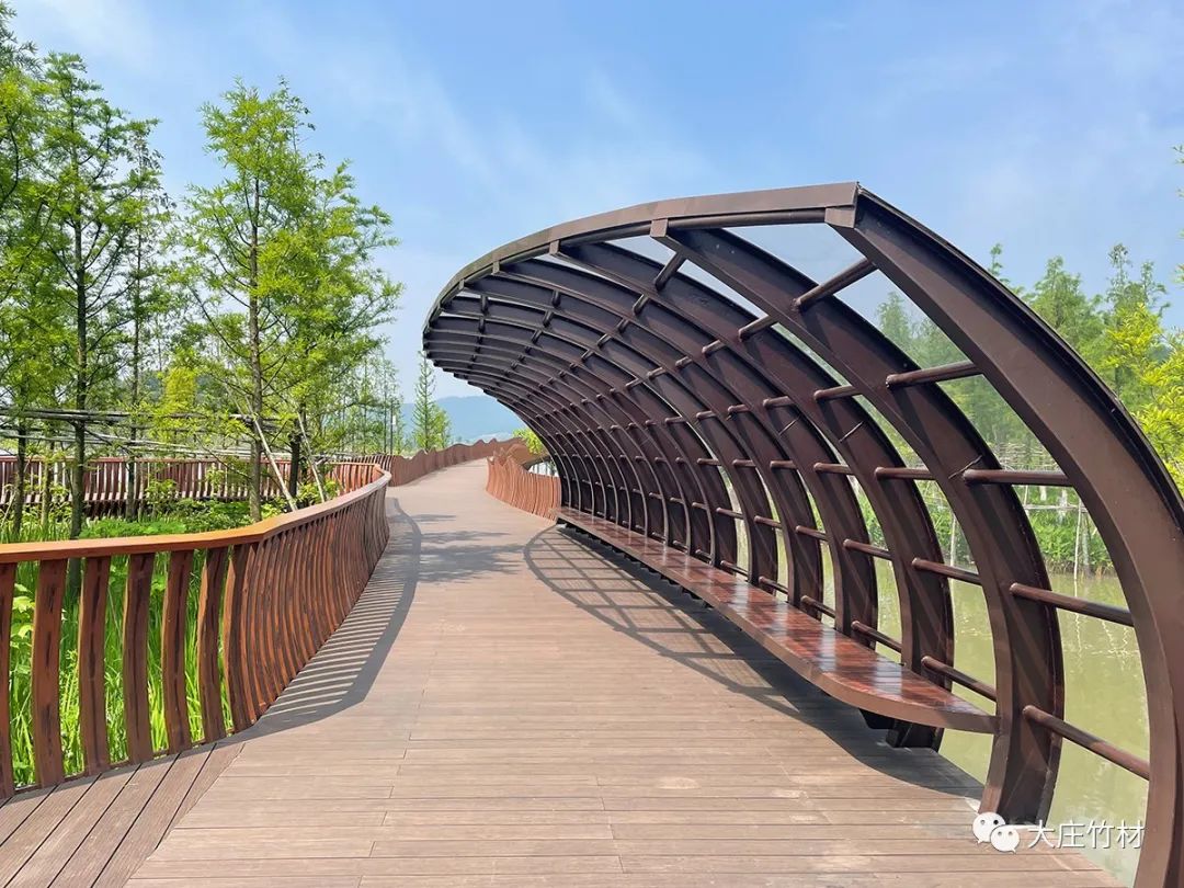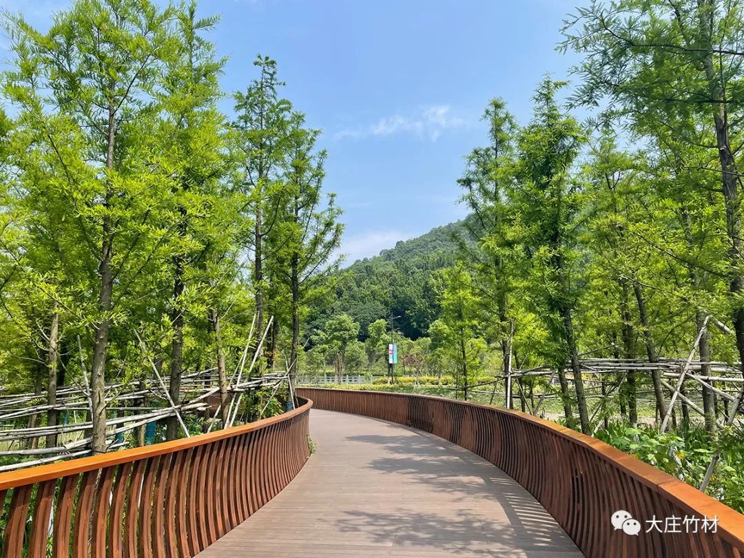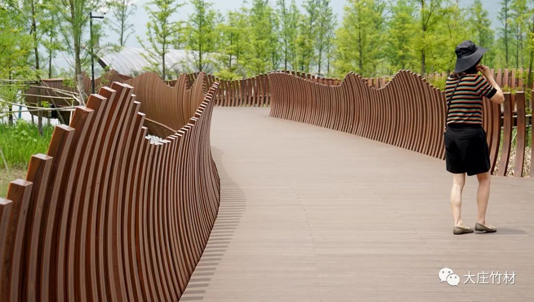 传统栈道都是四四方方的状态,过多的棱角感给人一种生硬晦涩的视觉刺激,而弧形起到圆润的过渡效果,能柔化尖角带来的刺激感,同时又起到视觉延伸的作用。