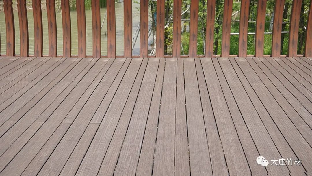 此次选用的是高耐小沟槽款,高耐表面带有凹凸纹理,具有一定的防滑性能。其次栈道悬于湖面,空气湿润,容易腐蚀地板,但高耐具有防腐、强抗霉等性能,使藻类无法轻易在其表面生长,也具有一定的安全性。