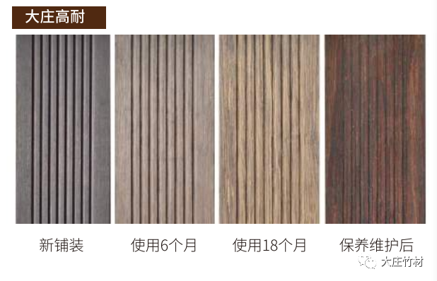 由于在强紫外线、冰雪、雨水、高温、干燥等复杂环境下使用,作为天然材料,户外竹材在使用一段时间后,有变色、细微裂缝、表面粗糙都属于正常现象,保养维护后,能恢复光亮如新。