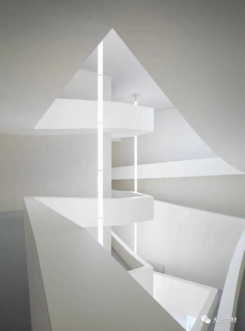 建筑真正的内涵在其内部,而不是表层,博物馆内白色扮演了单纯的背景,使空间归于平静,凸出的和内陷的白色坡道,根据其离开线性光源的距离,渲染上了从微亮至微暗的退晕般的光彩。