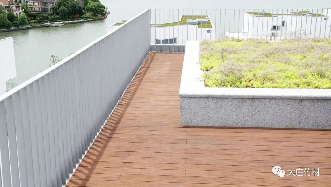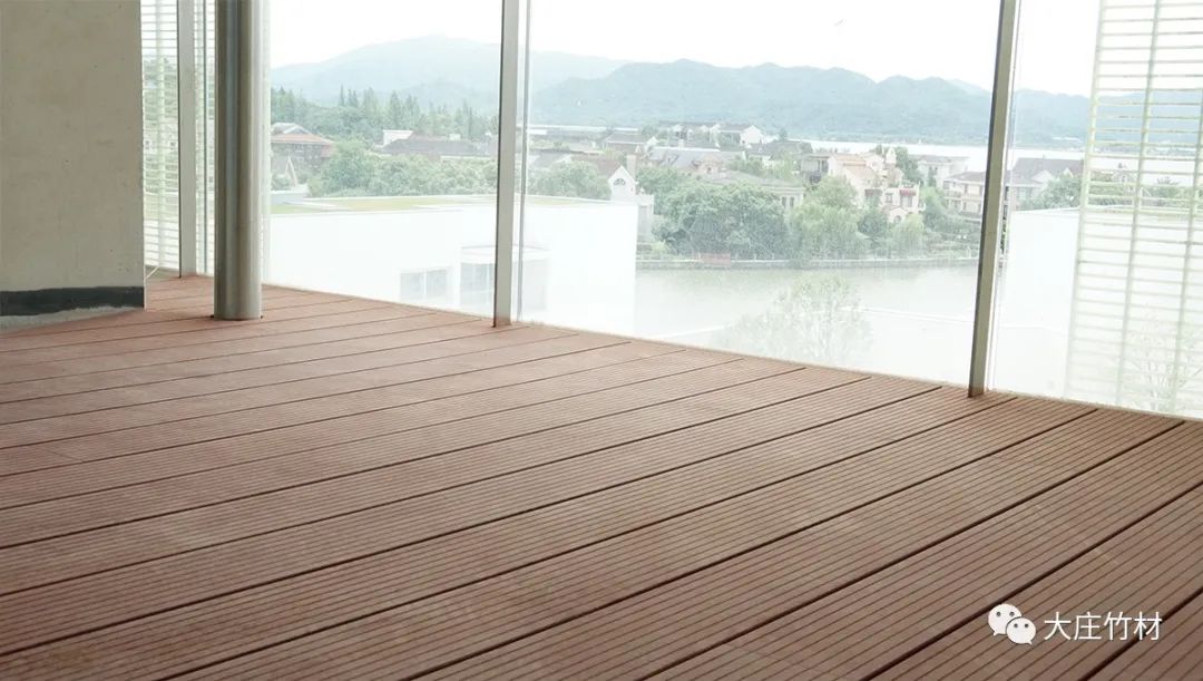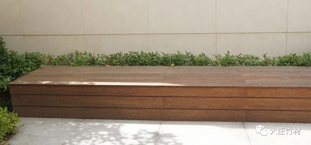露天平台铺装瓷态®的优势在于:竹材保湿,不易结露,调湿的性能比金属、石材或混凝土强。所以当天气湿润,或温度下降时不会产生表面化结成水珠似的出汗现象,同时也不会因为地面滑而造成不必要的麻烦。